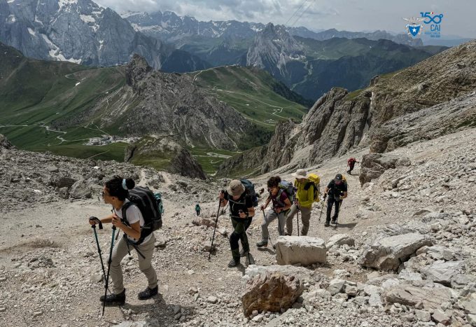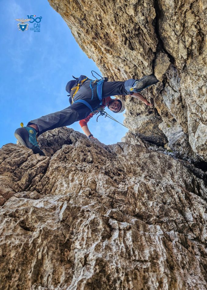 Un percorso narrativo che raccoglie il materiale fotografico di tanti soci che negli anni hanno condiviso una parte della loro vita nel Club Alpino Italiano sezione di Reggio Emilia. Immagini che rappresentano i momenti di partecipazione, di allegria, di amicizia, di socialità. Scatti che ritraggono donne e uomini che camminano insieme seguendo un sentiero, che salgono verso la cima, immortalati all’arrivo in vetta con la bandiera, soddisfatti dopo la fatica per raggiungerla. Ci sono i gesti, gli sguardi, i sorrisi che vediamo nei protagonisti di queste immagini. C’è la solidarietà nella condivisione di una cordata, l’impegno di chi si presta ad accompagnare, l’azione di chi si occupa di tenere i sentieri in buono stato, l’aiuto di chi lavora per organizzare le attività sezionali, lo stupore di potere ammirare il paesaggio da un punto di vista privilegiato. Una “cordata” di immagini che documenta attraverso una cinquantina di foto in bianco e nero e a colori le anime delle attività che il CAI svolge, dalle uscite sezionali di varie discipline, alla promozione culturale, dalla scuola CAI, alle serate didattiche e divulgative, dalla formazione alla prevenzione, dalla tutela dell’ambiente montano alla manutenzione dei sentieri.