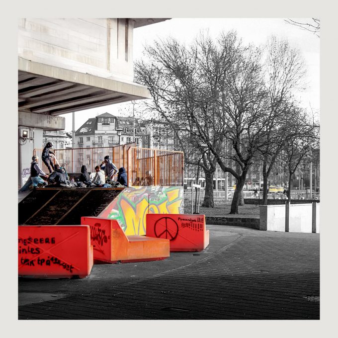 Spazi di condivisione è il ritratto di luoghi nell’ovunque dove la generazione Z costruisce e demolisce quotidianamente la propria identità. E’ un percorso individuale e collettivo nei conflitti interiori che coesistono nel tentativo di affermarsi su terreni incerti e fragili, senza sicurezze e direzioni chiare. Sacrifici, coesione, aspettative, idee, viaggi interiori, inerzia, condivisione, appartenenza, segreti che ispirano libertà, incontri intimi, fermi nel tempo, dove si crea una via, ed insieme, si prende respiro.