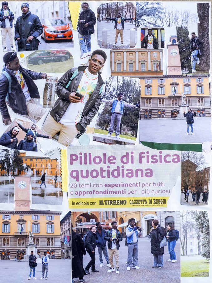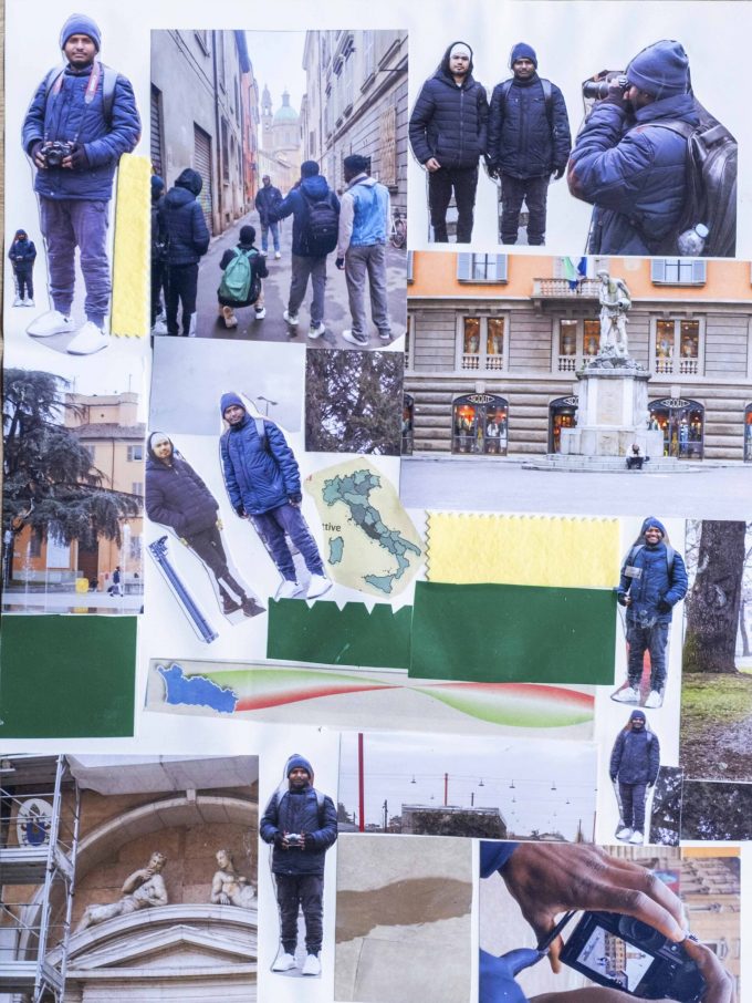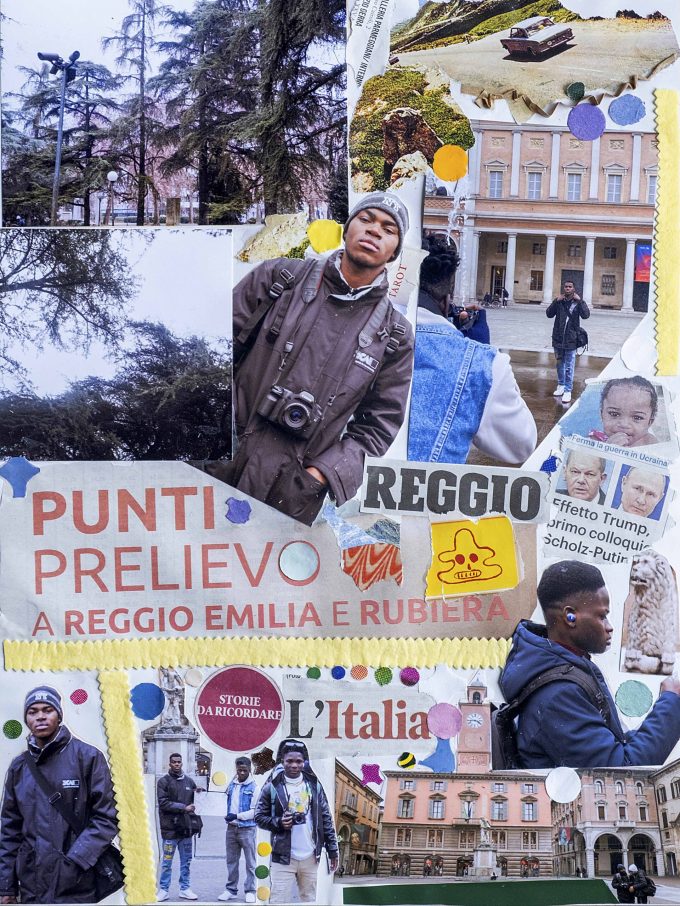 L’esposizione rappresenta la tappa finale di un percorso laboratoriale di fotografia e collage, pensato per sviluppare la sensibilità e le capacità creative dei partecipanti; favorire la creazione di nuove relazioni tra loro e il territorio; stimolare la sperimentazione e il lavoro collaborativo nella realizzazione di opere fotografiche. Il laboratorio ha avuto come obiettivo iniziale quello di raccontare luoghi significativi di Reggio Emilia. Tuttavia, durante l’attività, i partecipanti hanno iniziato a fotografare sé stessi nei luoghi che ritenevano più importanti. È emerso così il desiderio di mettere al centro la propria immagine nella narrazione della città. Le fotografie raccontano dinamiche di appropriazione dei luoghi, il bisogno di sentirsi presenti e di raccontarsi in un nuovo contesto. Emerge la vivacità tipica dei vent’anni, con una sorta di “vanità” nel mostrarsi nello spazio per diventarne protagonisti.